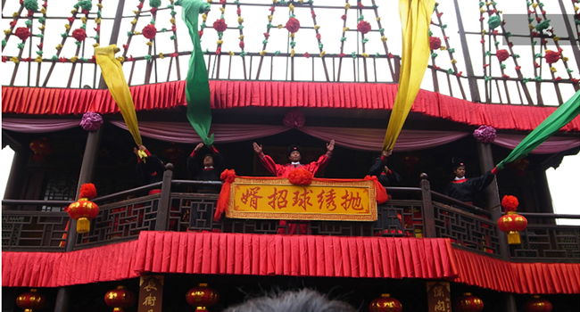 來到宋城,首先不得不說的是王員外千金拋繡球招親的表演:二八年華的待嫁少女拋繡球選夫婿,和演員的互動(dòng),讓游客們也切身體會(huì)了一把古代的婚嫁習(xí)俗,不得不贊。